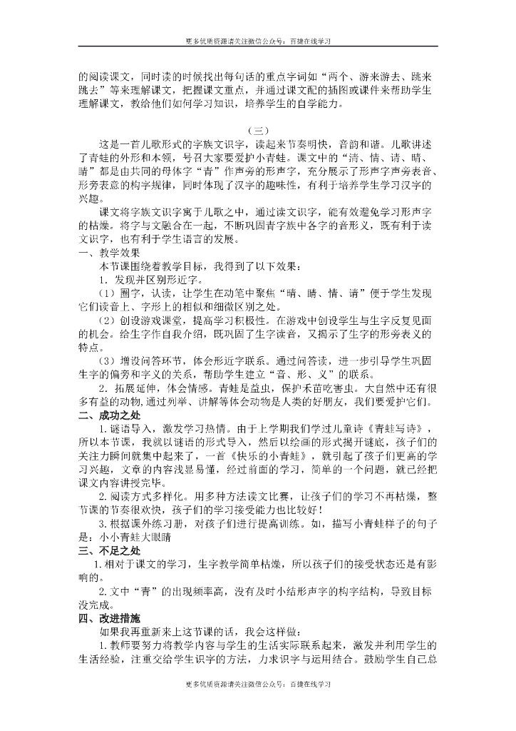 一年级语文下册识字3 小青蛙 教学反思.doc
