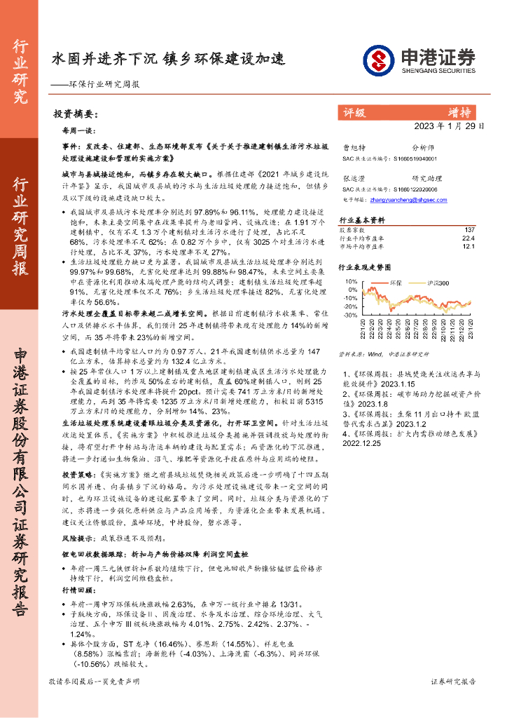 申港证券:环保行业研究周报:水固并进齐下沉 镇乡环保建设加速.pdf