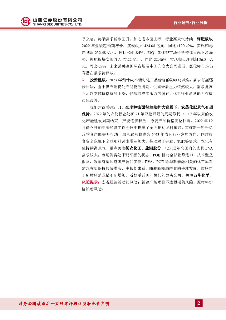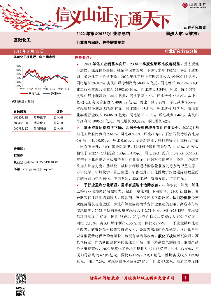 山西证券:基础化工2022年报&2023Q1业绩总结:行业景气回落,静待需求复苏.pdf