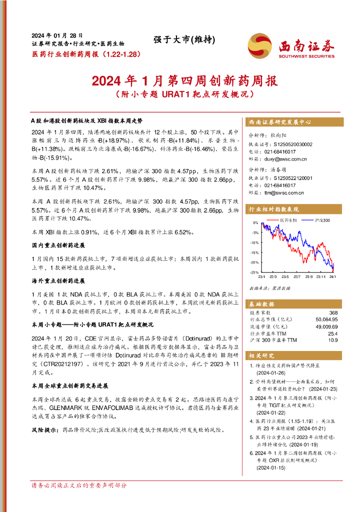 西南证券:医药行业创新药周报:2024年1月第四周创新药周报(附小专题URAT1靶点研发概况).pdf