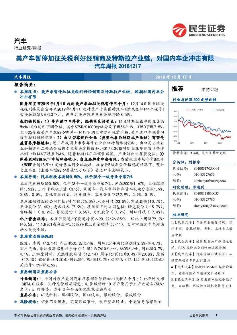 民生证券:汽车周报:美产车暂停加征关税利好经销商及特斯拉产业链,对国内车企冲击有限.pdf