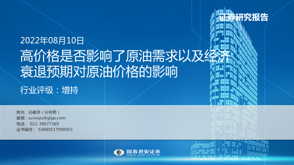 国泰君安:石油化工行业:高价格是否影响了原油需求以及经济衰退预期对原油价格的影响.pdf