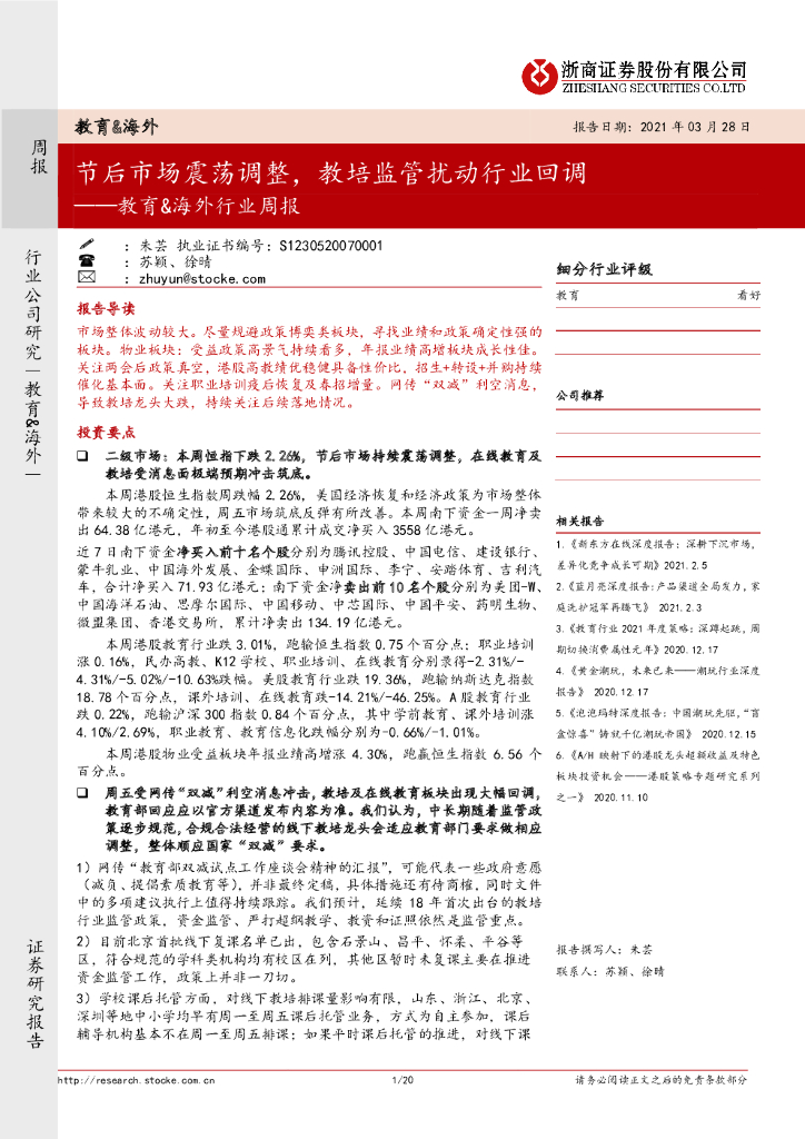 浙商证券:教育&海外行业周报:节后市场震荡调整,教培监管扰动行业回调.pdf