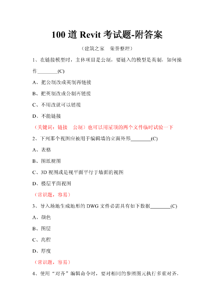 100道Revit考试题-附答案.pdf
