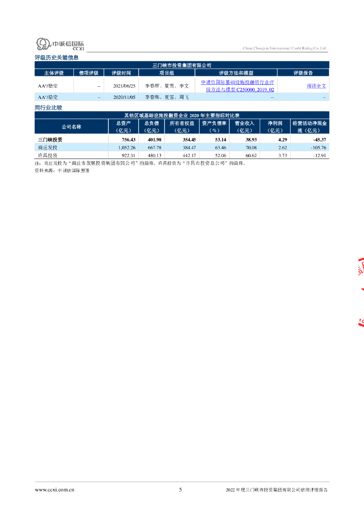 中诚信:三门峡市投资集团有限公司2022年度主体信用评级报告.pdf