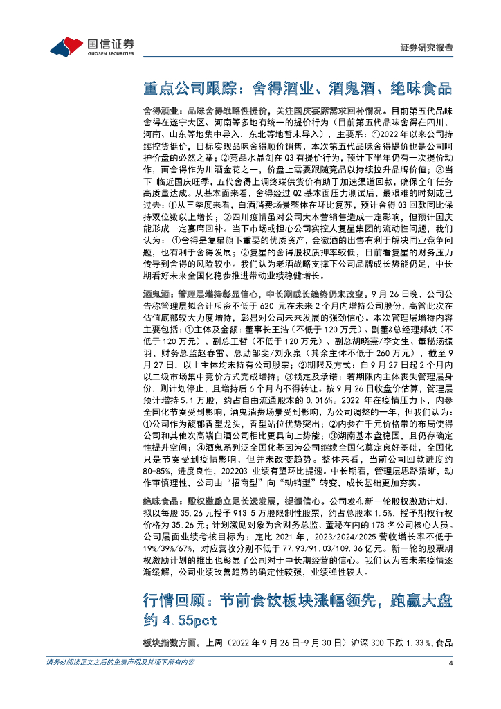 国信证券:食品饮料行业周专题(2022年第40周):节前食饮板块涨幅领先,国庆期间白酒宴席消费回补情况分化.pdf