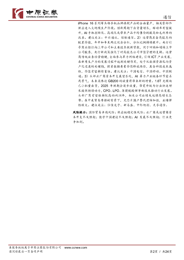 中原证券:通信行业月报:国家实施手机等数码产品购新补贴,智能手机市场平稳复苏.pdf
