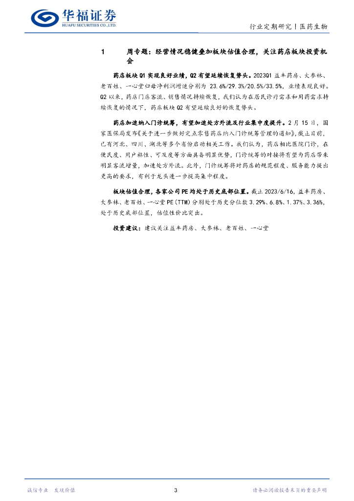 华福证券:医药生物行业周报:建议关注估值合理,经营稳健的药店板块.pdf