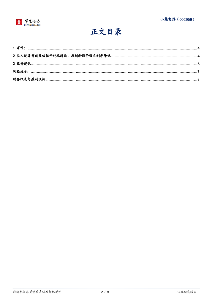 华安证券:小熊电器(002959)-收入端备货前置略低于终端增速,原材料涨价致毛利率降低.pdf
