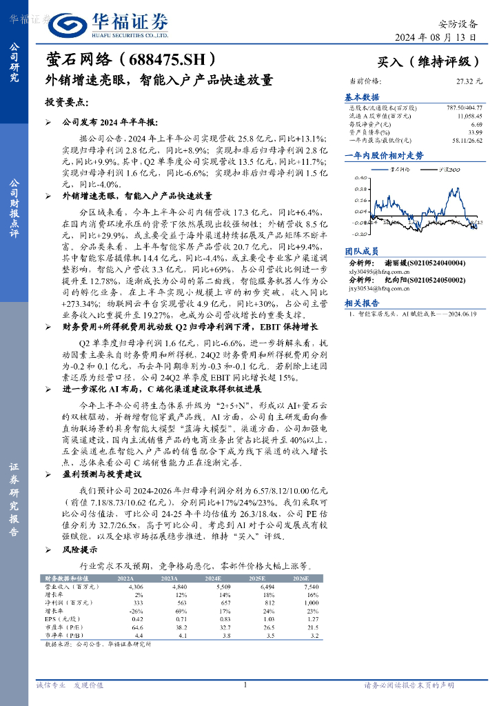 华福证券:萤石网络(688475)-外销增速亮眼,智能入户产品快速放量.pdf