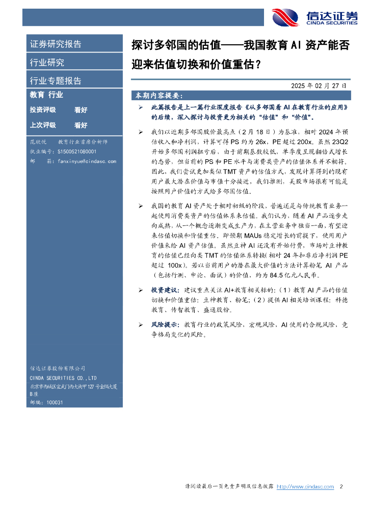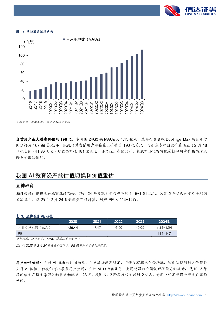 信达证券:教育行业:探讨多邻国的估值——我国教育AI资产能否迎来估值切换和价值重估?.pdf