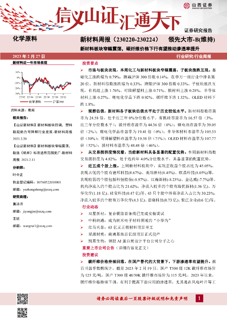 山西证券:新材料周报:新材料板块窄幅震荡,碳纤维价格下行有望推动渗透率提升.pdf