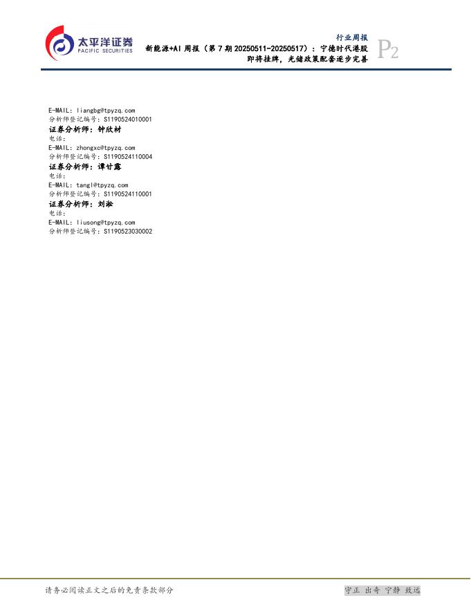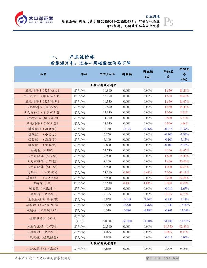 太平洋证券:电力设备及新能源行业新能源+AI周报(第8期20250511-20250517):宁德时代港股即将挂牌,光储政策配套逐步完善.pdf