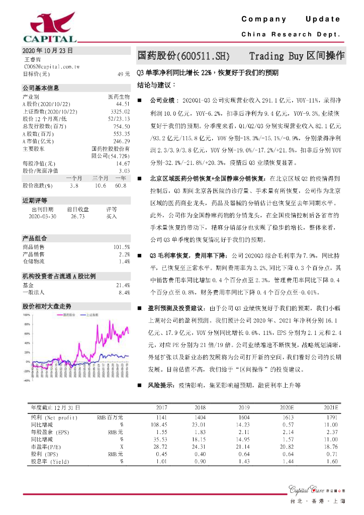 群益证券:国药股份(600511)-Q3单季净利同比增长22%,恢复好于我们的预期.pdf