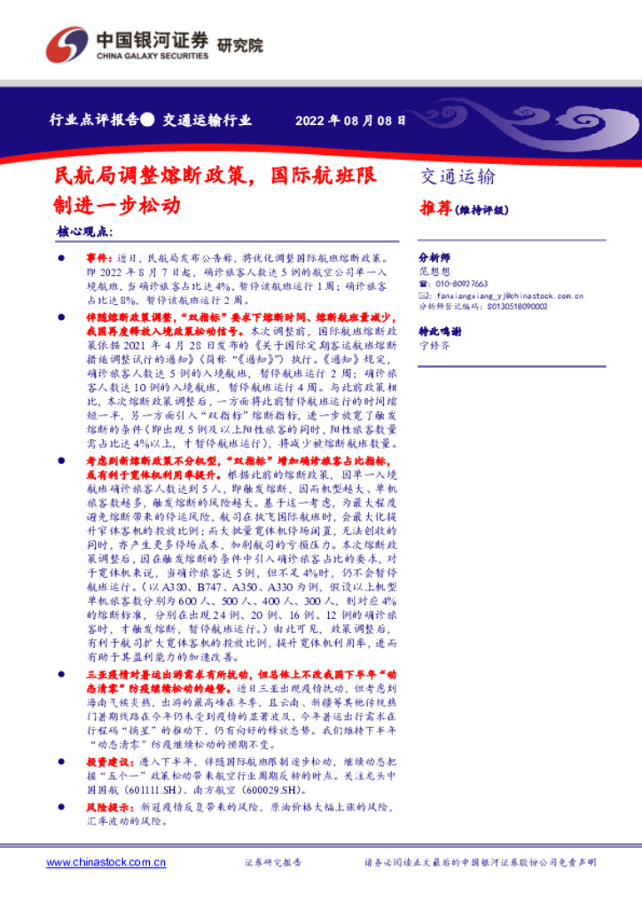 中国银河:交通运输行业:民航局调整熔断政策,国际航班限制进一步松动.pdf