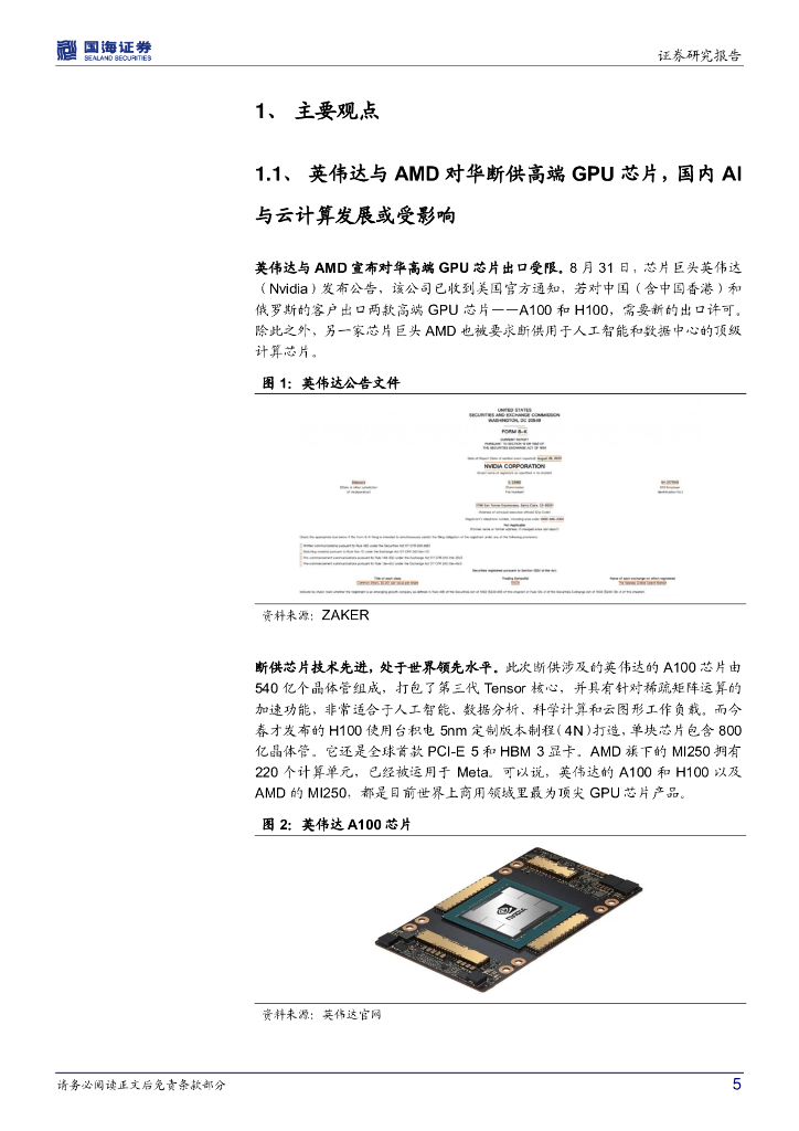 国海证券:中小盘行业周报:英伟达与AMD对华出口高端GPU芯片受限,国内云计算与人工智能发展或受影响.pdf