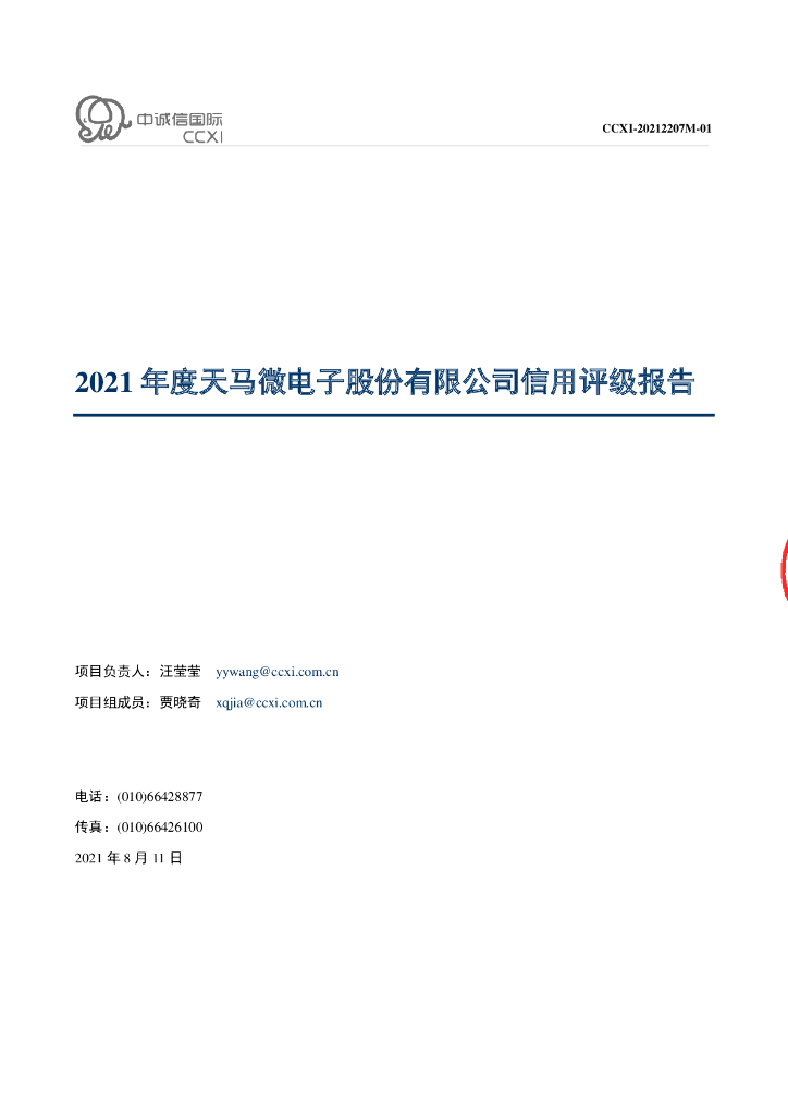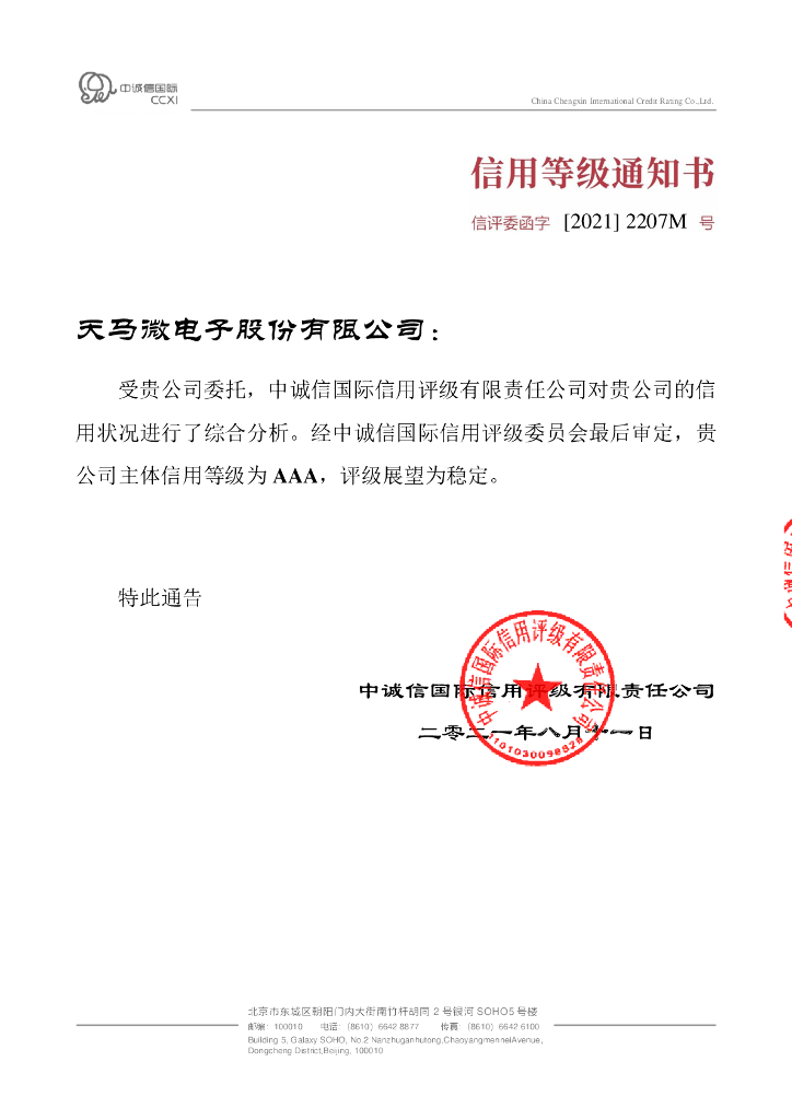 中诚信:天马微电子股份有限公司2021年度主体信用评级报告.pdf