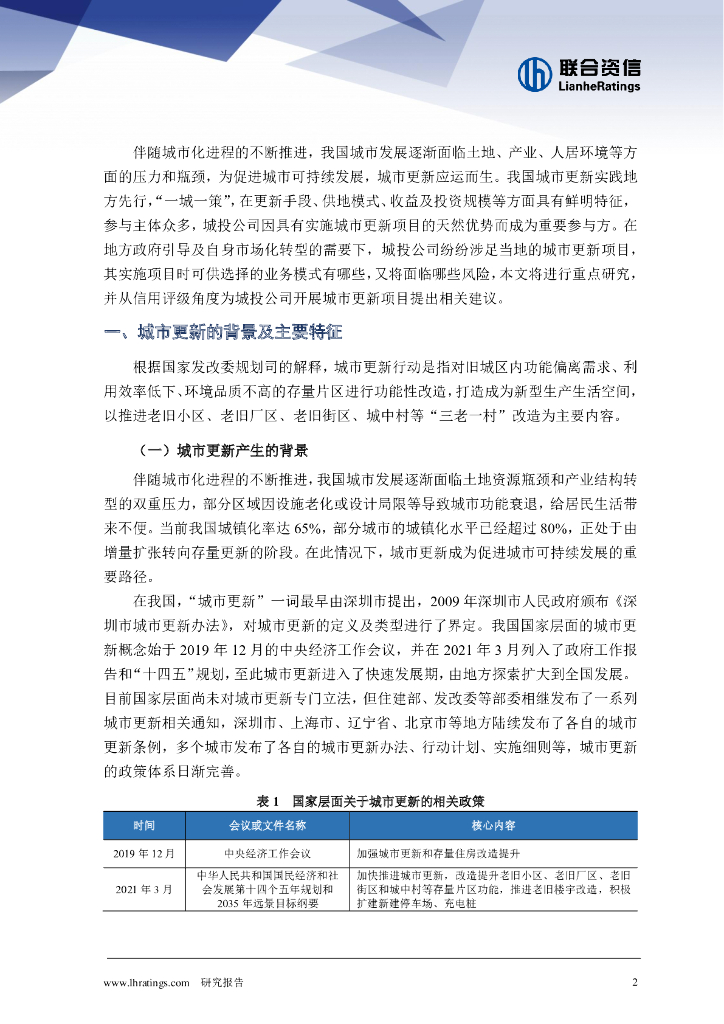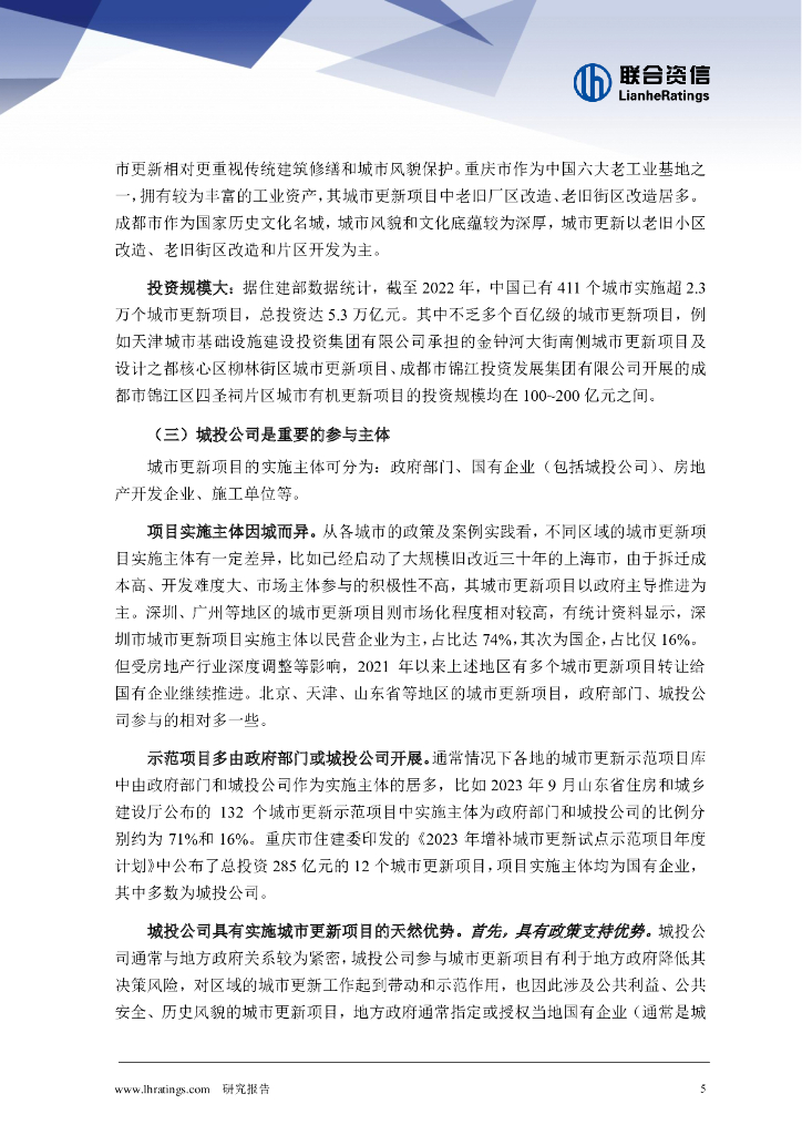 联合资信:城投公司参与城市更新业务的模式及主要风险研究报告.pdf