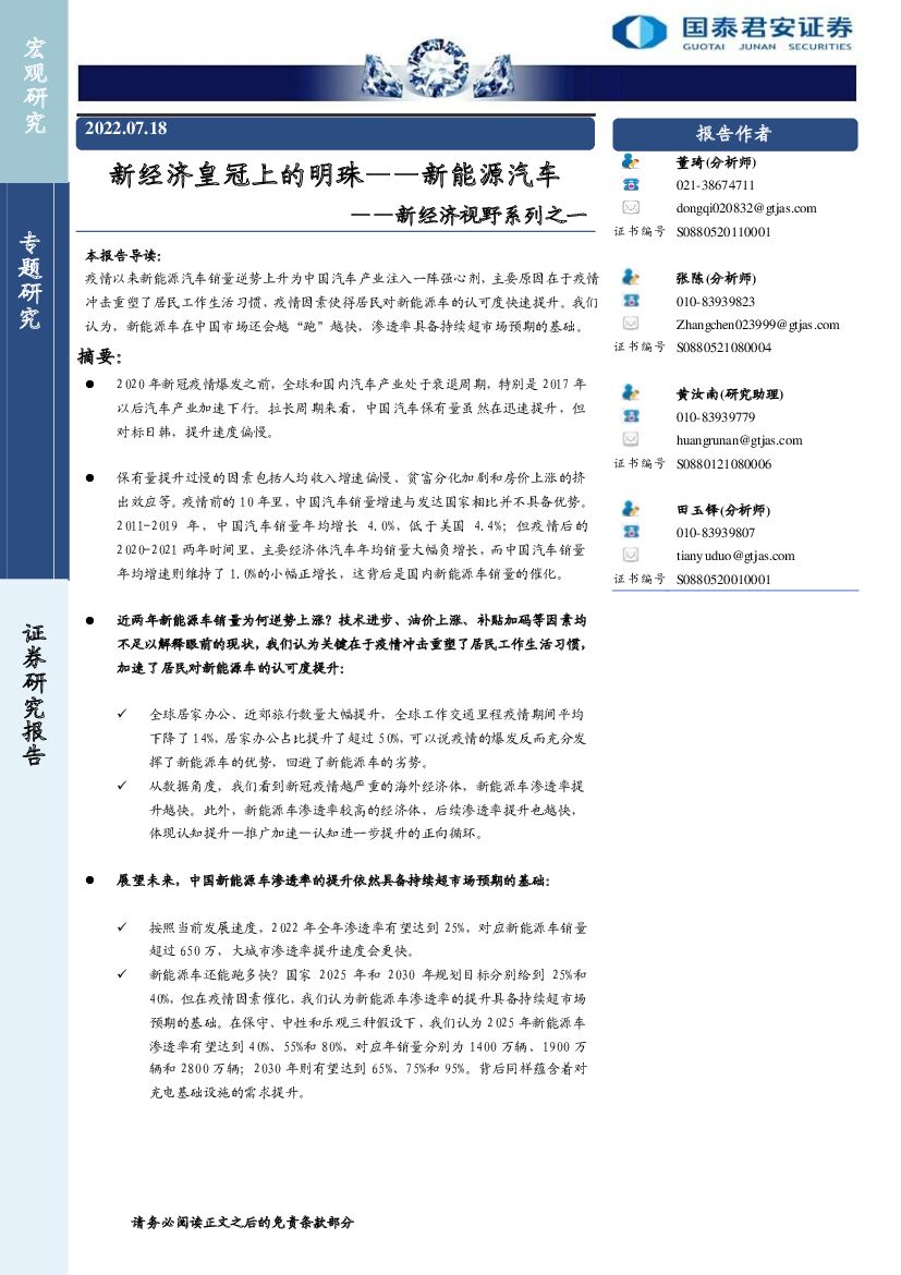 国泰君安:新经济视野系列之一:新经济皇冠上的明珠,新能源汽车.pdf