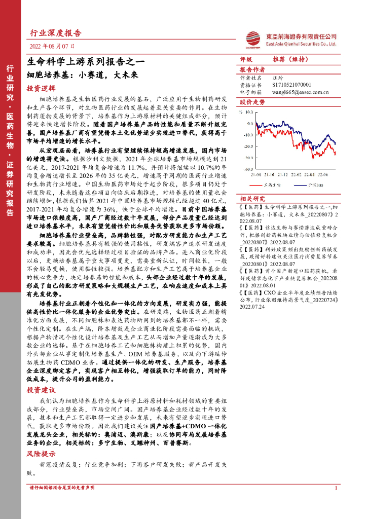 东亚前海证券:医药生物行业深度报告:生命科学上游系列报告之一-细胞培养基:小赛道,大未来.pdf