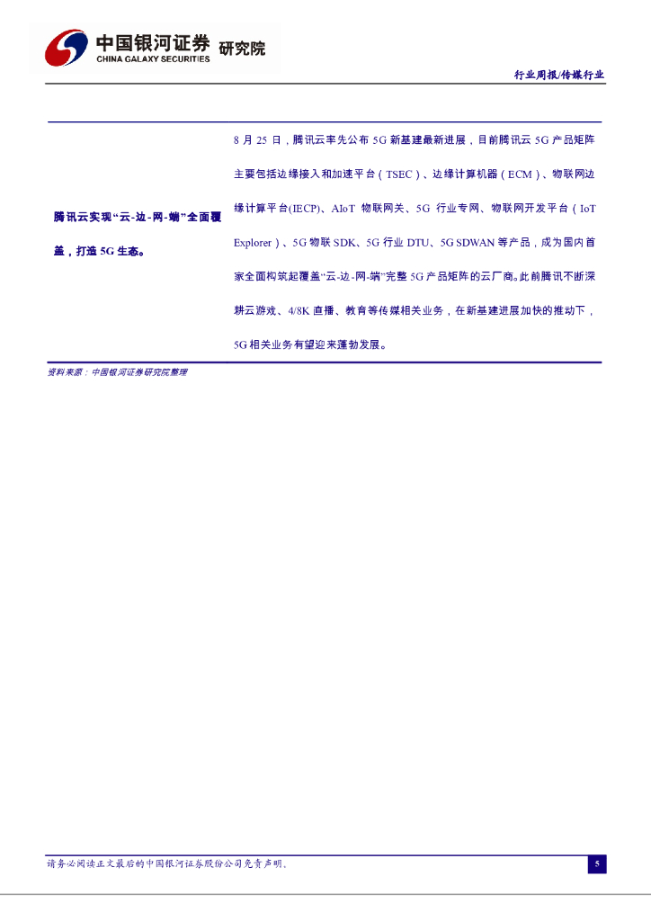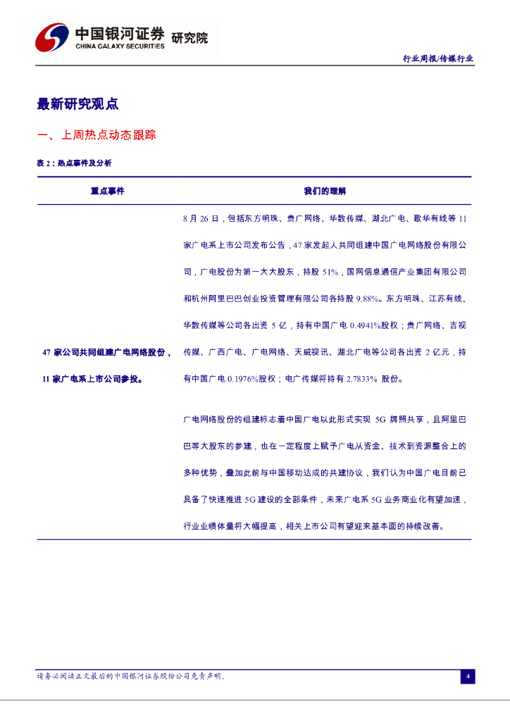 中国银河:传媒行业周报:中国广电网络正式完成组建,广电系5G建设有望提速.pdf