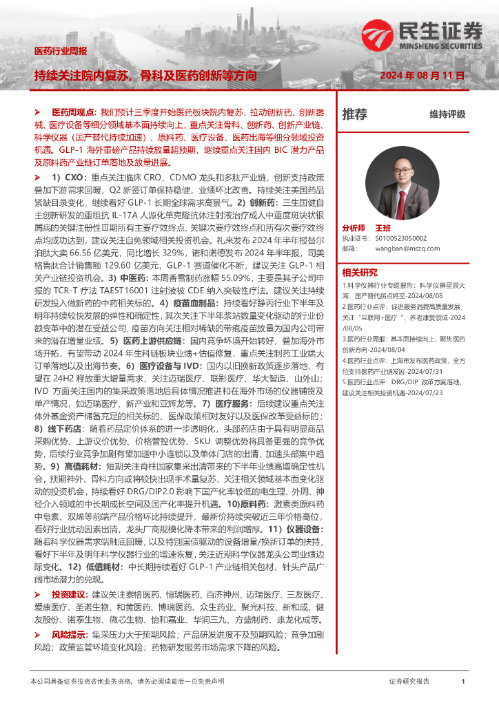 民生证券:医药行业周报:持续关注院内复苏,骨科及医药创新等方向.pdf