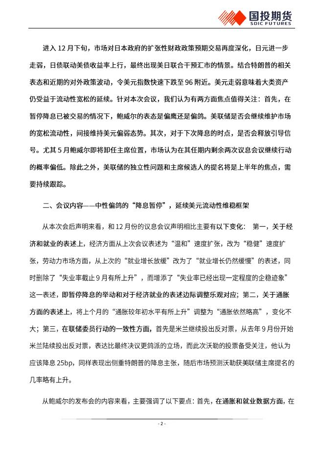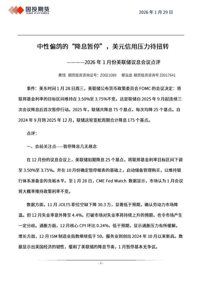 国投期货:2026年1月份美联储议息会议点评:中性偏鸽的“降息暂停”,美元信用压力待扭转-260130.pdf