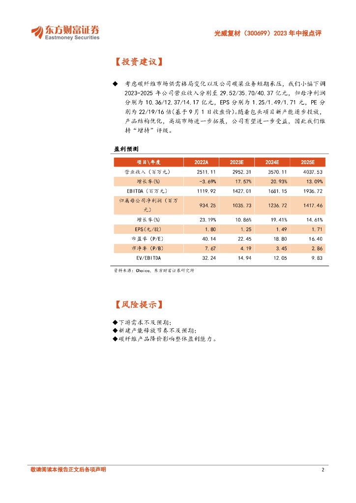 东方财富证券:光威复材(300699)-2023年中报点评:拓展优化产业布局,包头项目扩产激发新动能.pdf