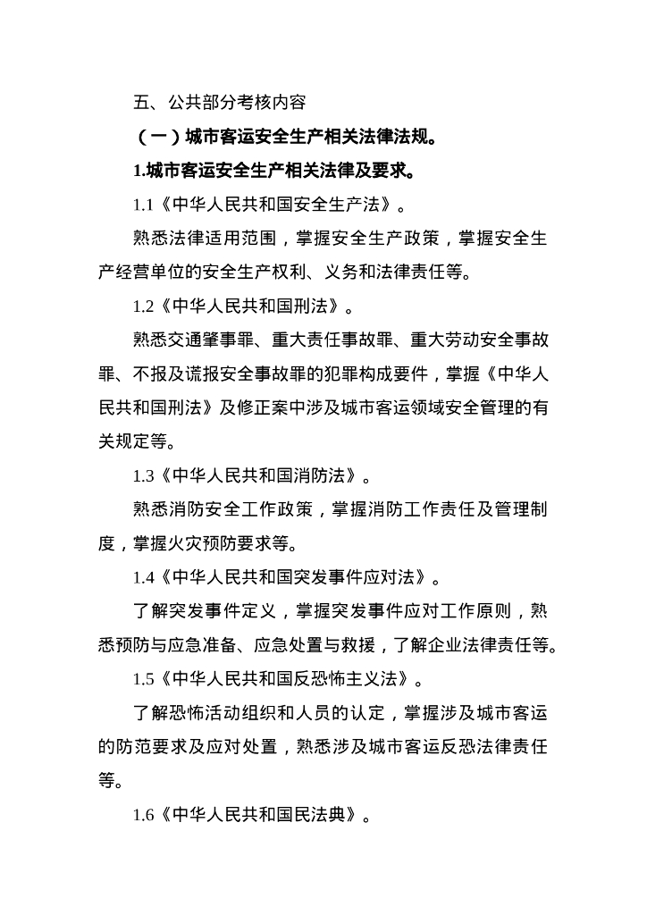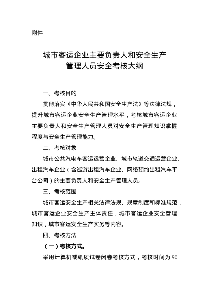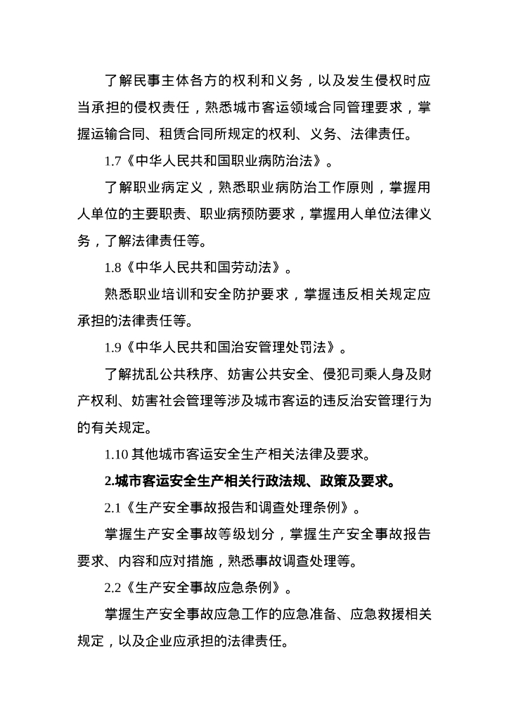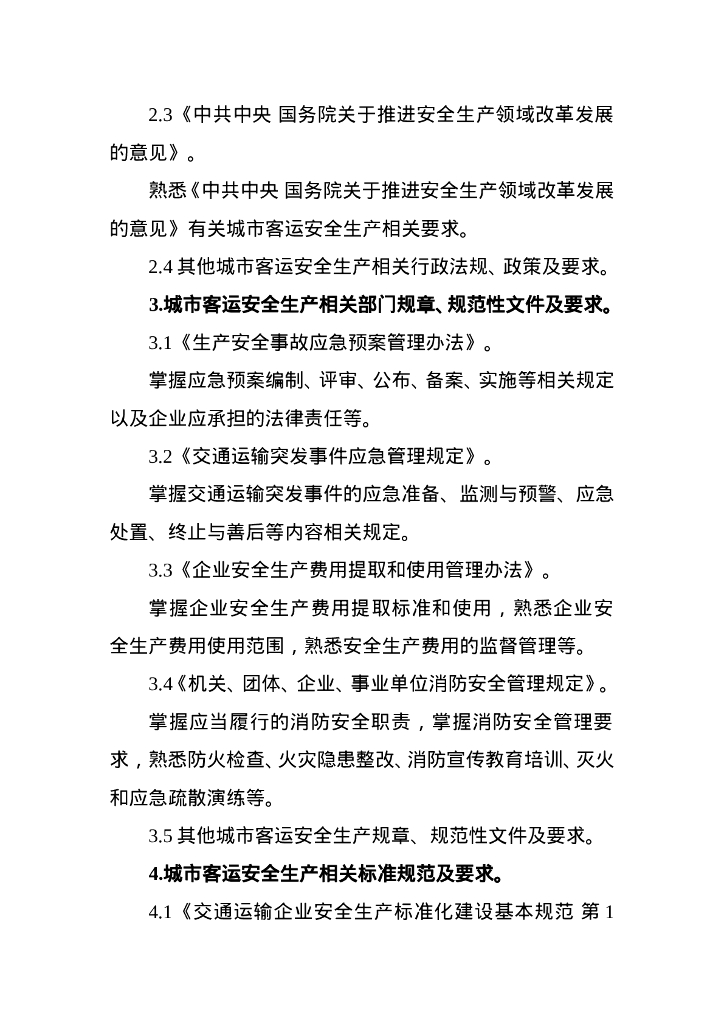 交通运输部:城市客运企业主要负责人和安全生产管理人员安全考核大纲.doc