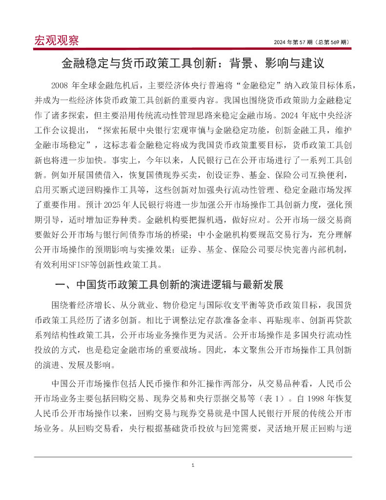 中国银行研究院:《宏观观察》2024年第57期:金融稳定与货币政策工具创新:背景、影响与建议.pdf