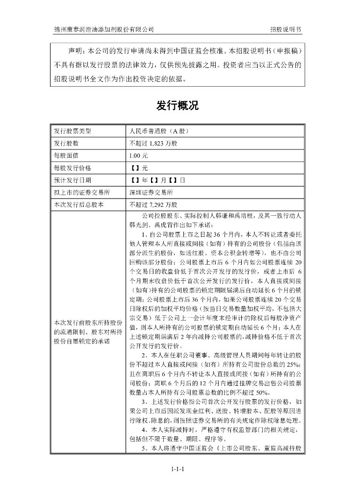 锦州康泰润滑油添加剂股份有限公司深交所创业板IPO上市招股说明书.pdf