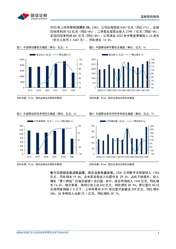 国信证券:中国移动(600941)-上半年净利润增长8%,数字化转型成效显著.pdf