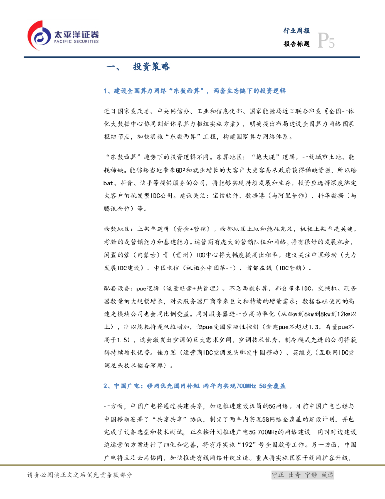 太平洋证券:通信设备Ⅲ行业周报:建设全国算力网络“东数西算”,通讯行业全面看多.pdf