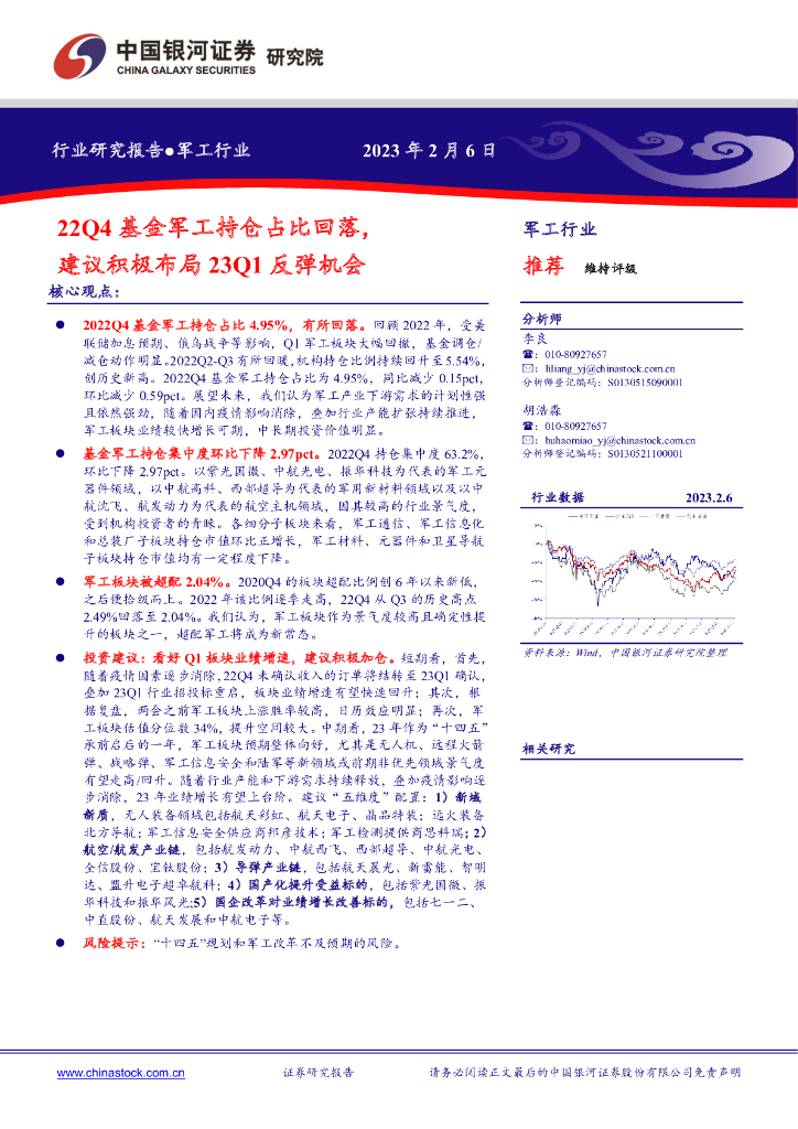 中国银河:军工行业:22Q4基金军工持仓占比回落,建议积极布局23Q1反弹机会.pdf