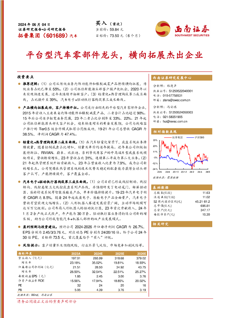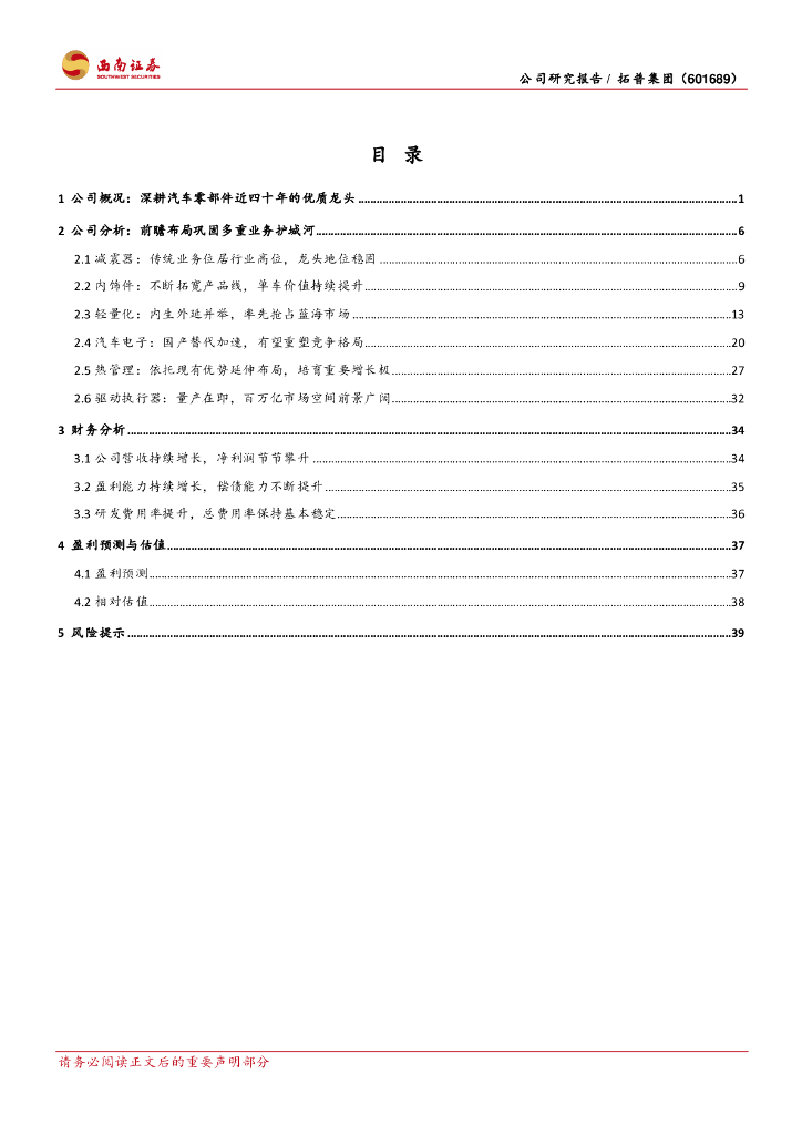 西南证券:拓普集团(601689)-平台型汽车零部件龙头,横向拓展杰出企业.pdf