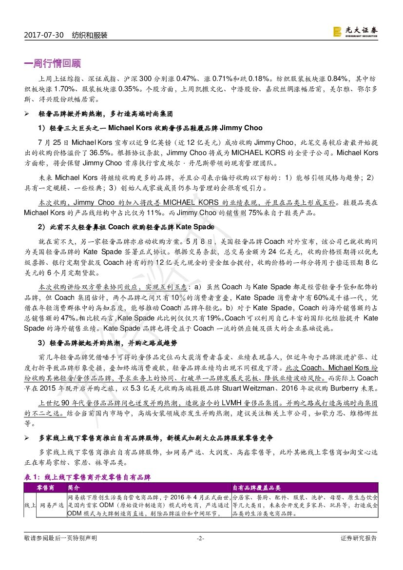 光大证券:纺织和服装行业周报:MK收购JIMMY CHOO,品牌并购热度提升.pdf
