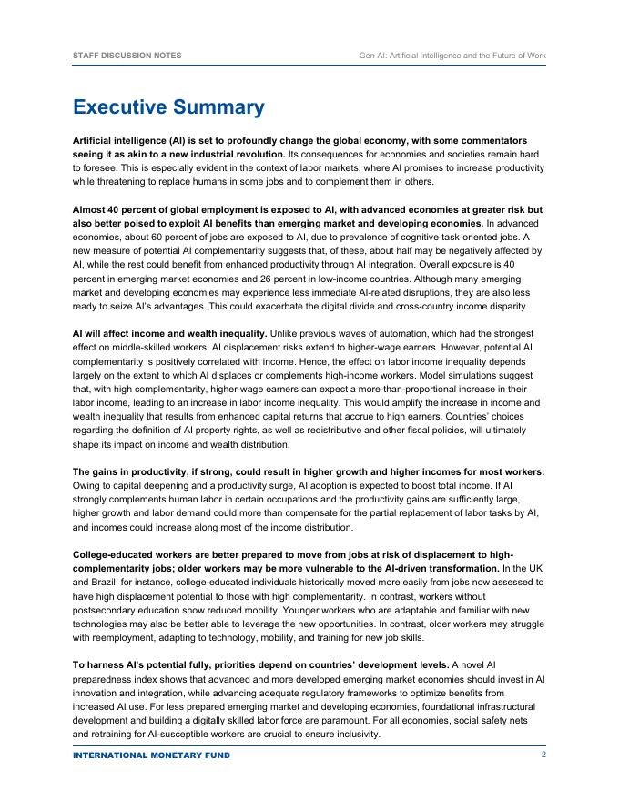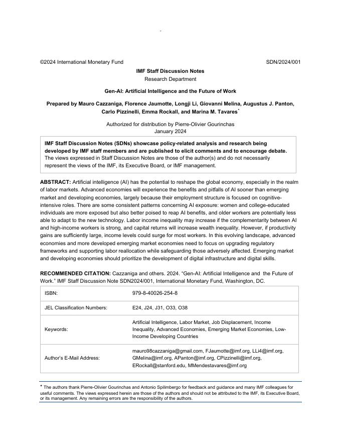 国际货币基金组织:人工智能与工作的未来(英文版).pdf