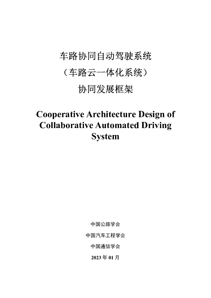 中国公路协会:车路协同自动驾驶系统(车路云一体化系统)协同发展框架.pdf