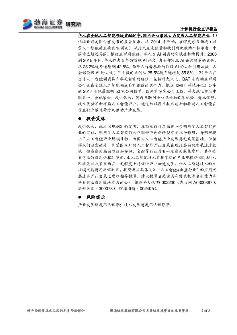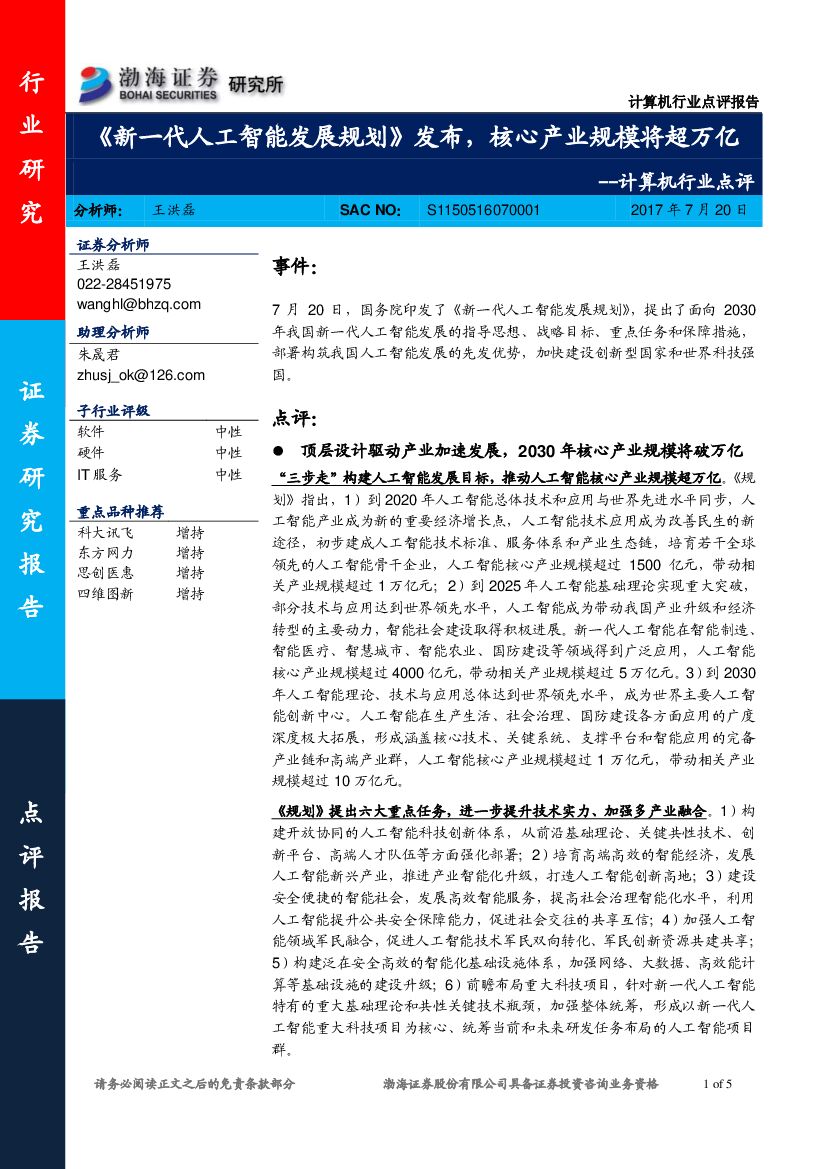 渤海证券:计算机行业点评:《新一代人工智能发展规划》发布,核心产业规模将超万亿.pdf