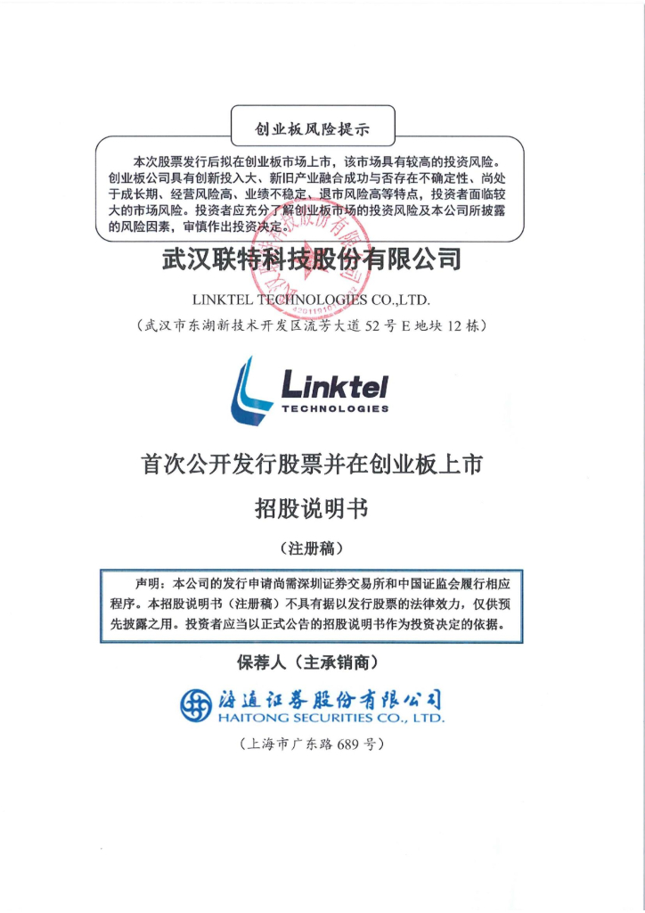 联特科技创业板IPO上市招股说明书:股东无诚信,数据遭质疑.pdf