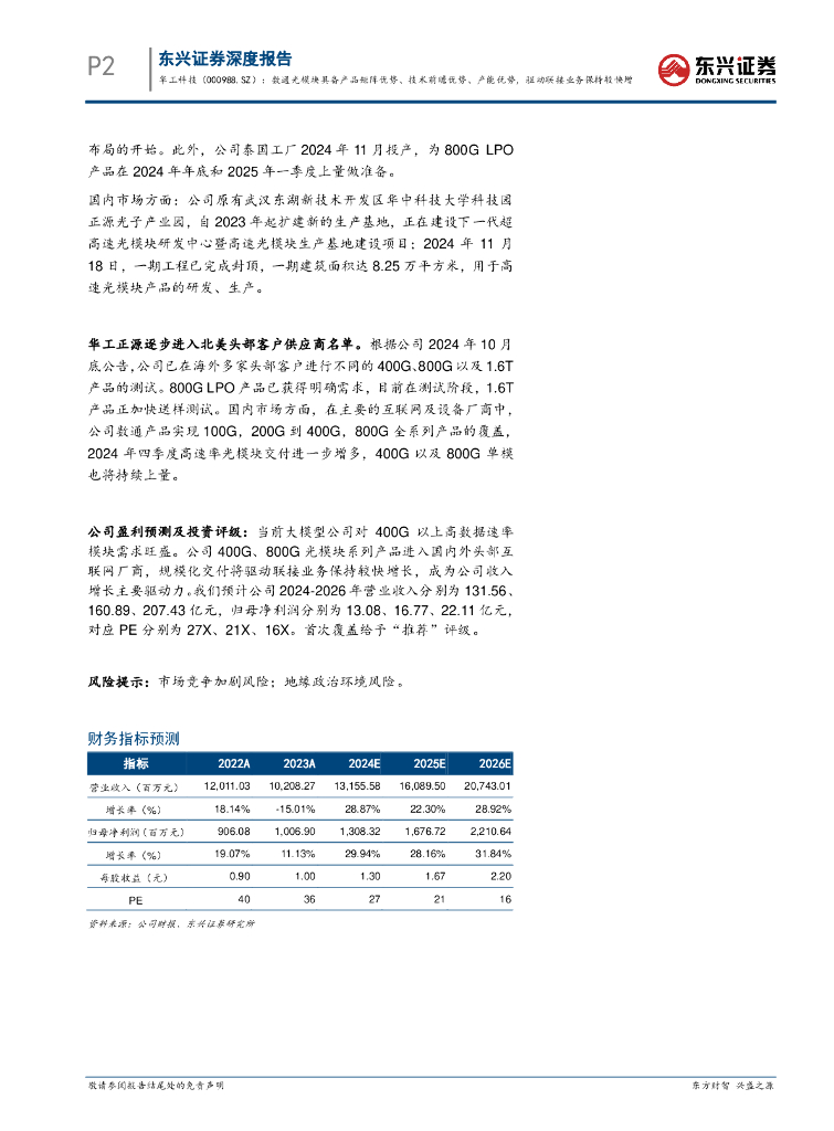东兴证券:华工科技(000988)-数通光模块具备产品矩阵优势、技术前瞻优势、产能优势,驱动联接业务保持较快增长.pdf