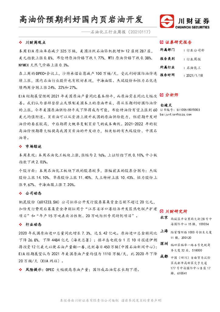 川财证券:石油化工行业周报:高油价预期利好国内页岩油开发.pdf