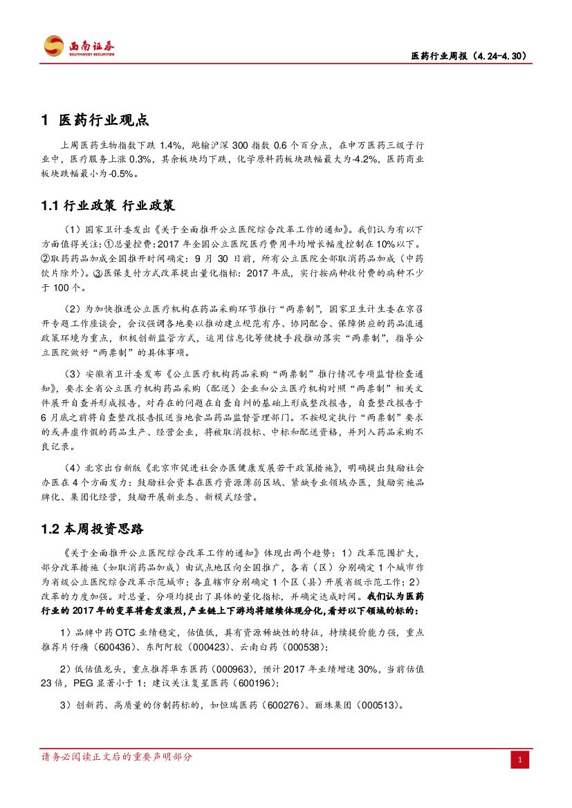 西南证券:医药行业周报:公立医院改革全面推进,行业分化加剧持续看好龙头.pdf