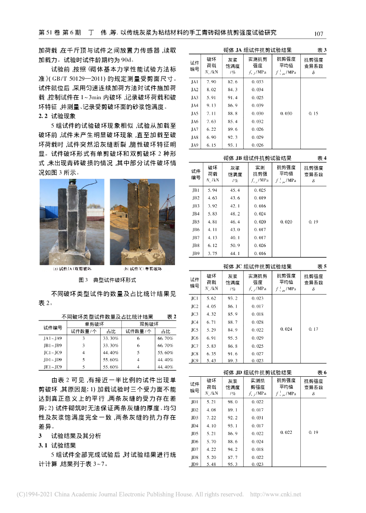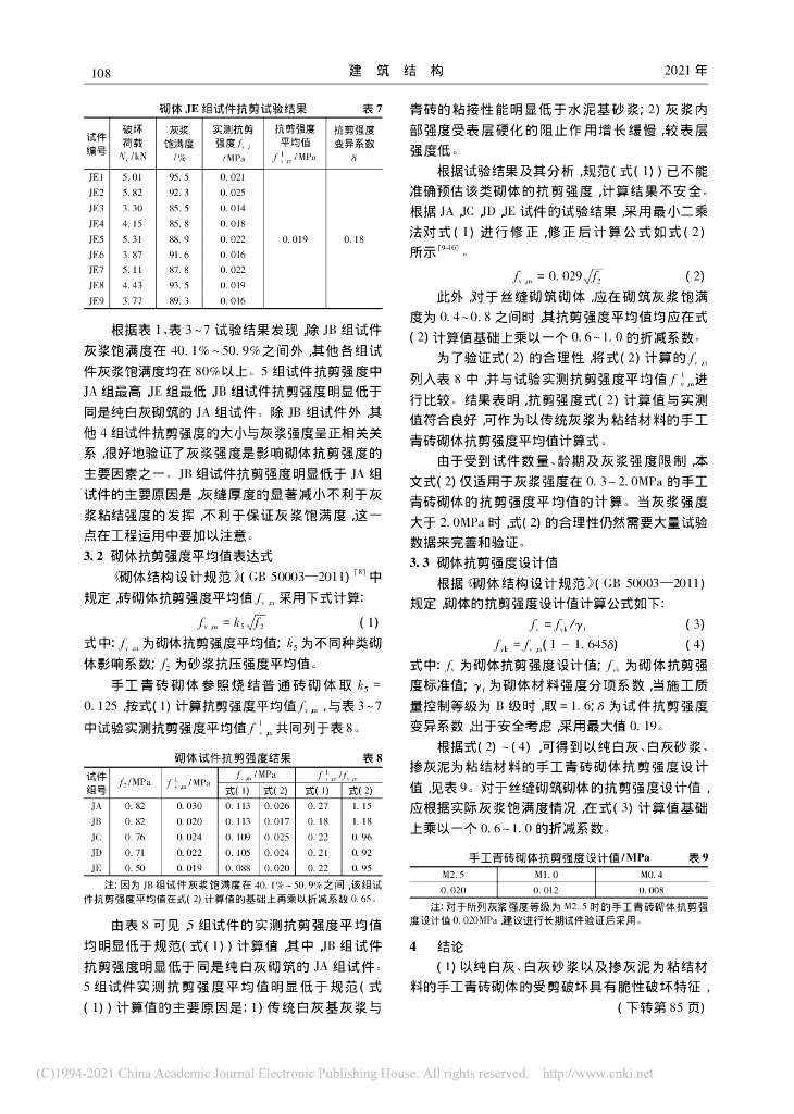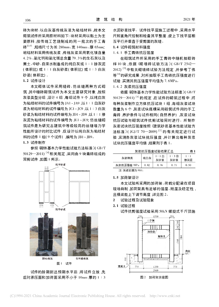 以传统灰浆为粘结材料的手工青砖砌体抗剪试.pdf