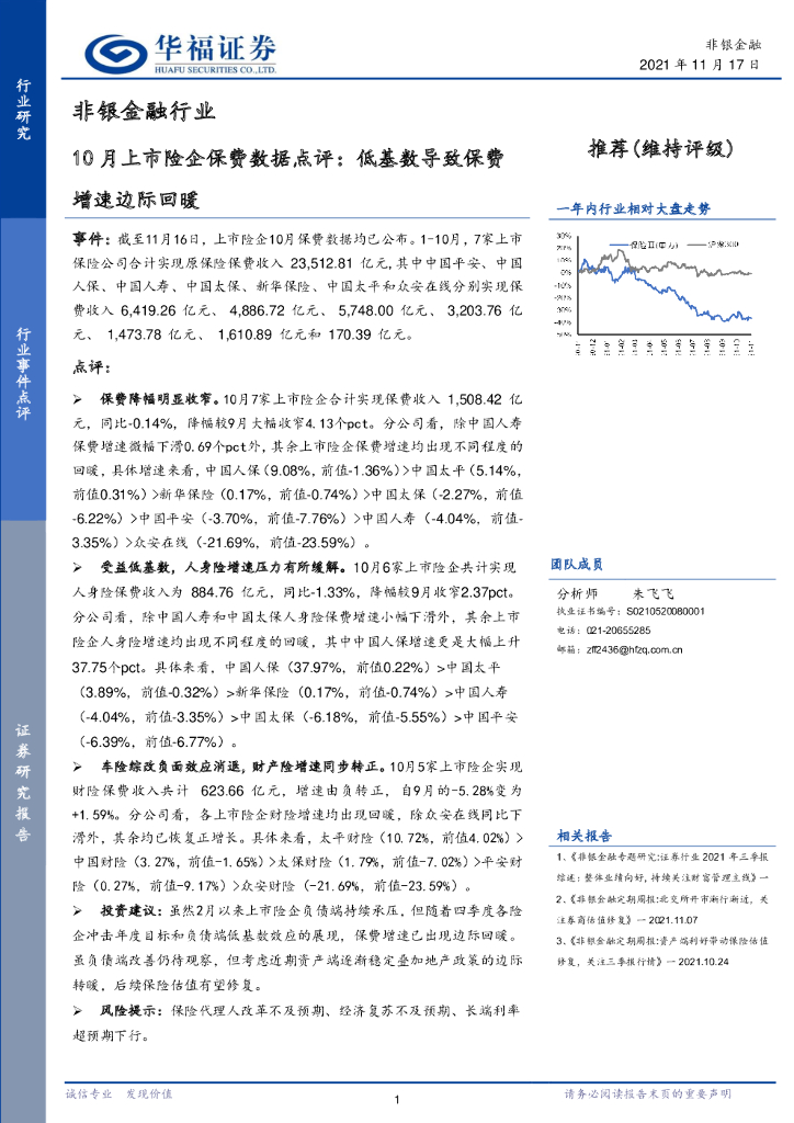 华福证券:非银金融10月上市险企保费数据点评:低基数导致保费增速边际回暖.pdf