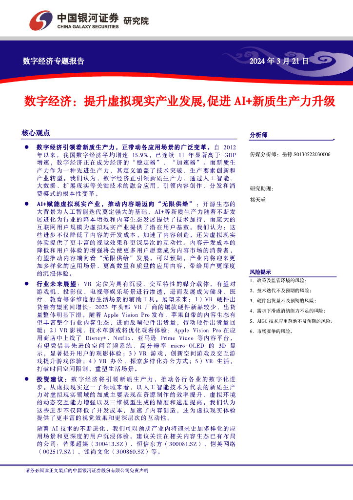 中国银河证券:数字经济专题报告:提升虚拟现实产业发展,促进AI+新质生产力升级.pdf