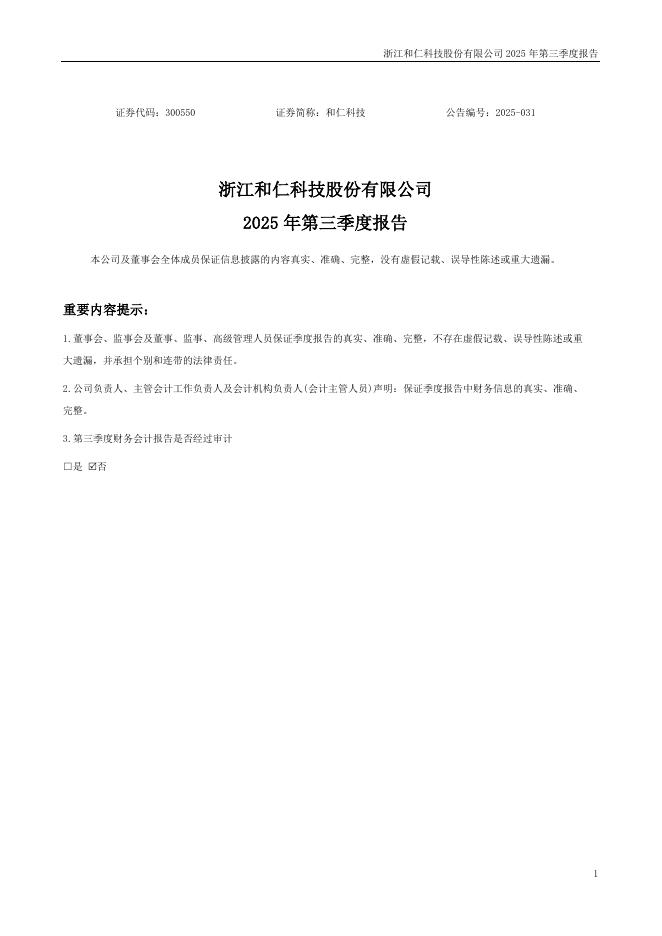 300550-和仁科技:2025年三季度报告.pdf