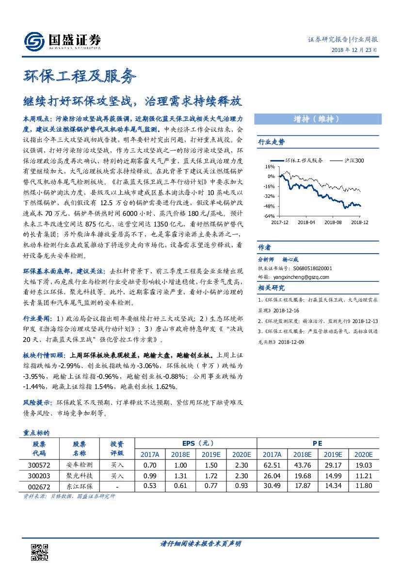 国盛证券:环保工程及服务行业周报:继续打好环保攻坚战,治理需求持续释放.pdf