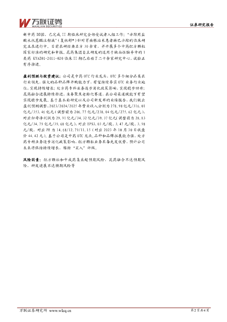 万联证券:华润三九(000999)-点评报告:昆药融合推进,配方颗粒业务波动.pdf