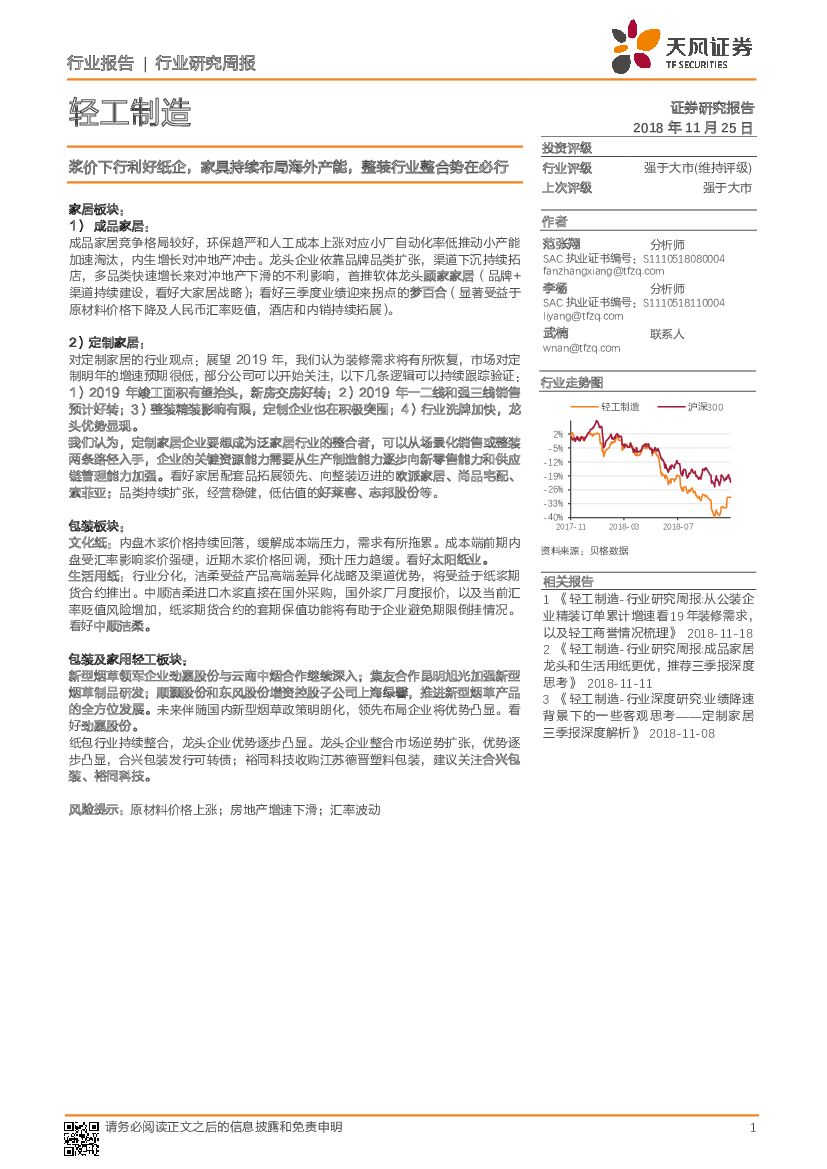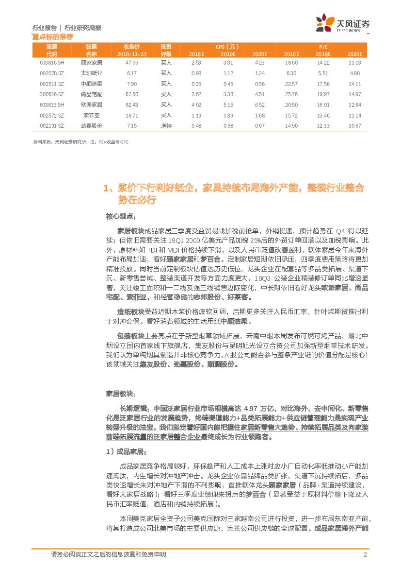 天风证券:轻工制造 行业研究周报:浆价下行利好纸企,家具持续布局海外产能,整装行业整合势在必行.pdf
